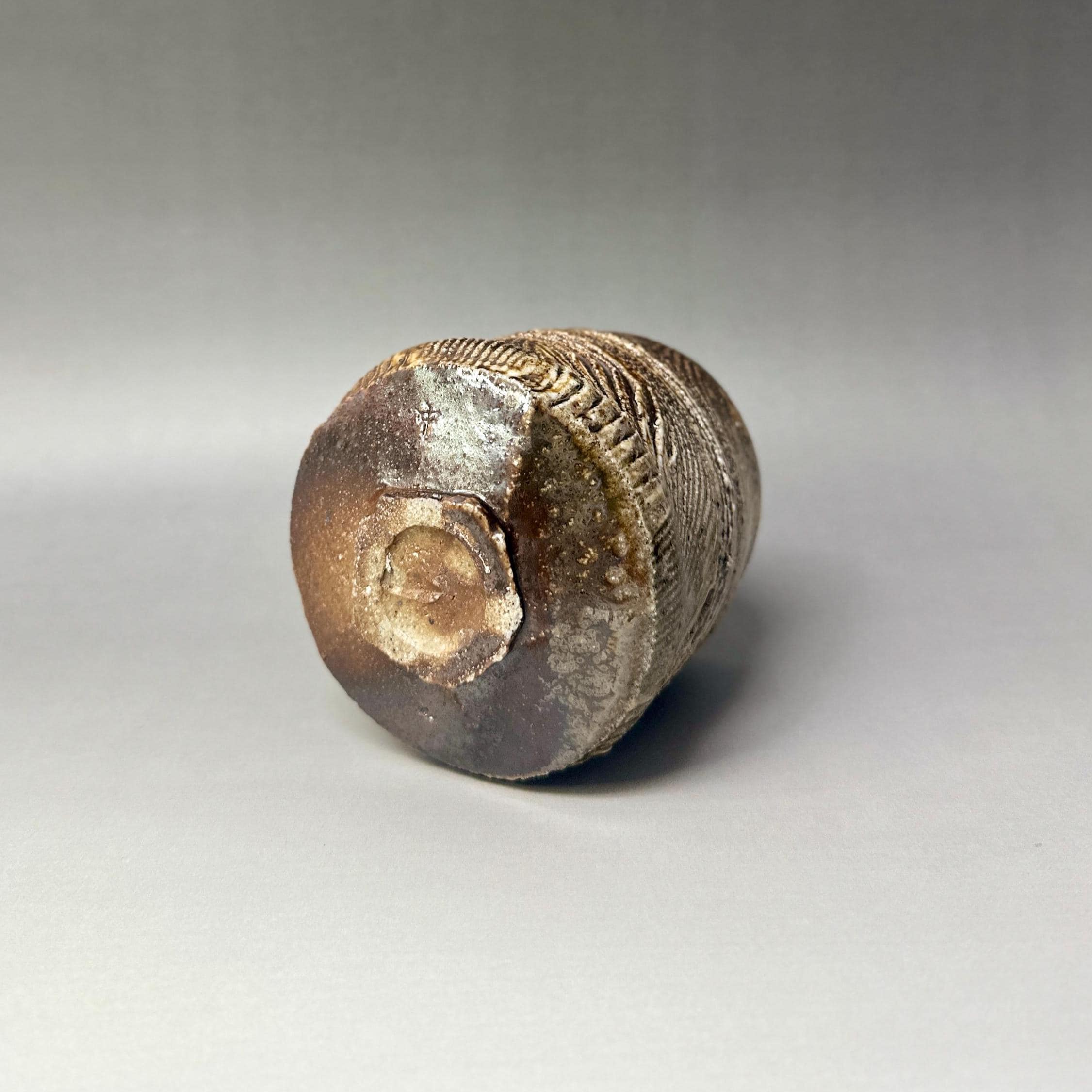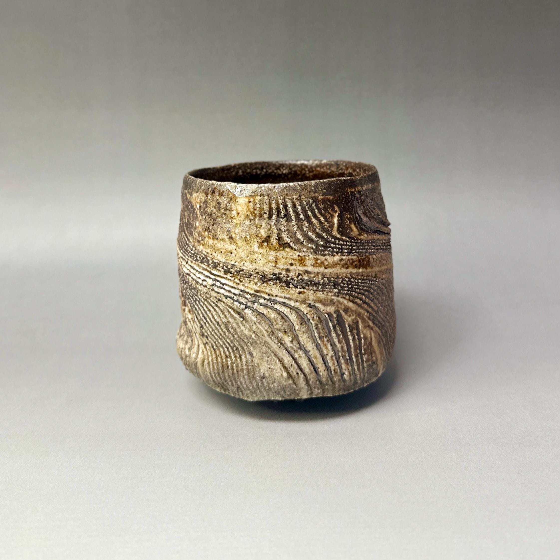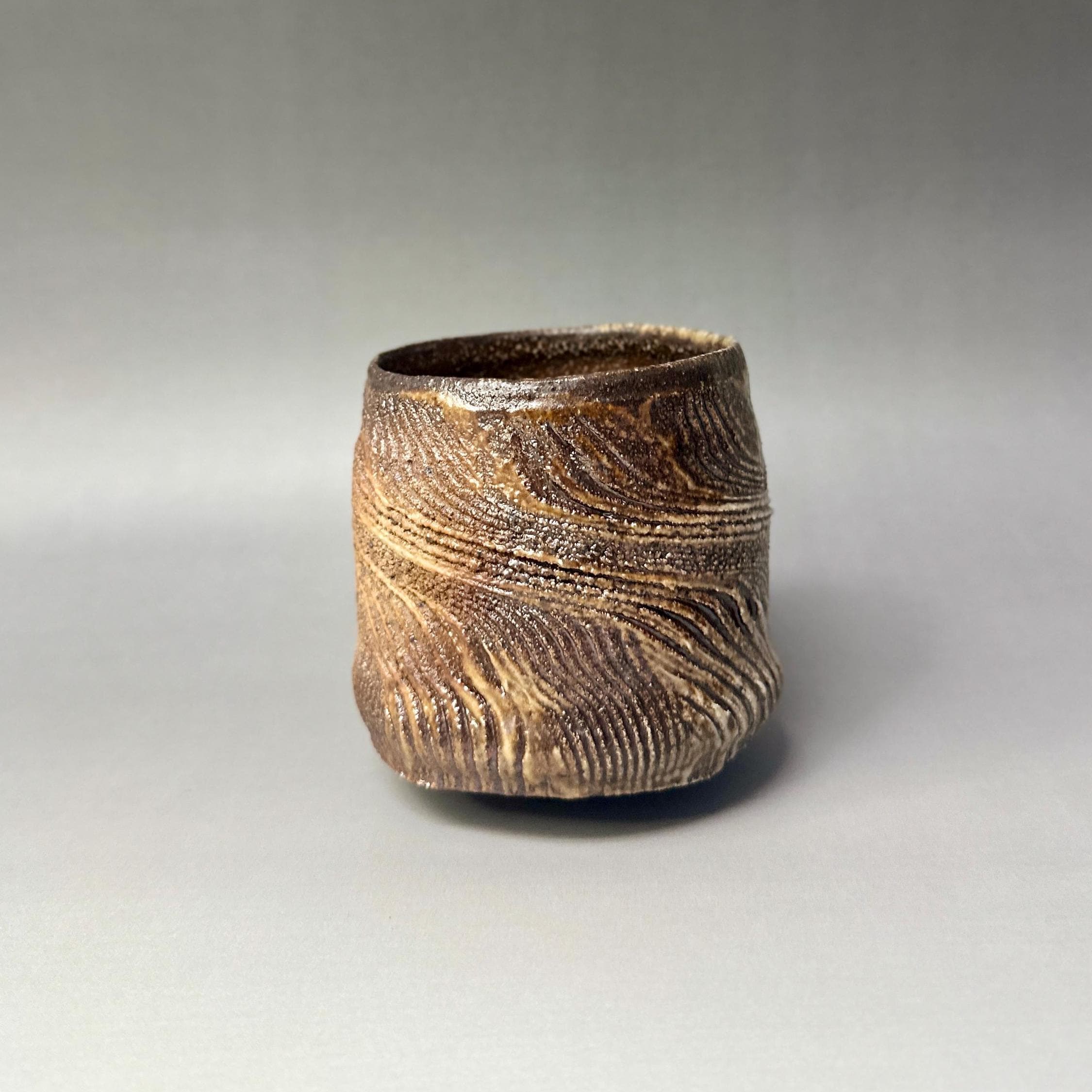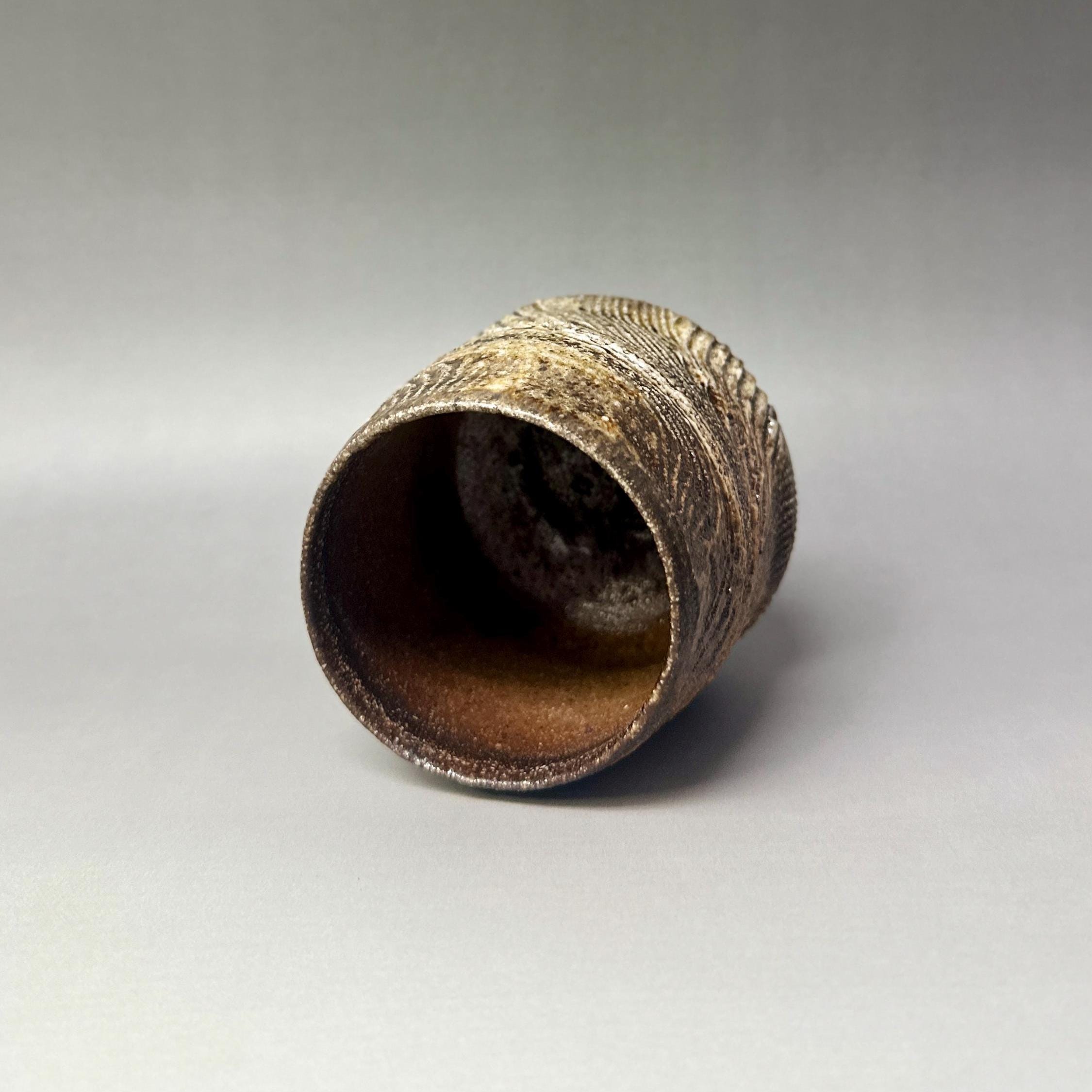 Ember Drift Woodfired Yunomi (Tea Cup) – Organic Wavy Texture, Brown Ash Glaze with Metallic Effect, Unique Handmade Coffee/Tea Cup