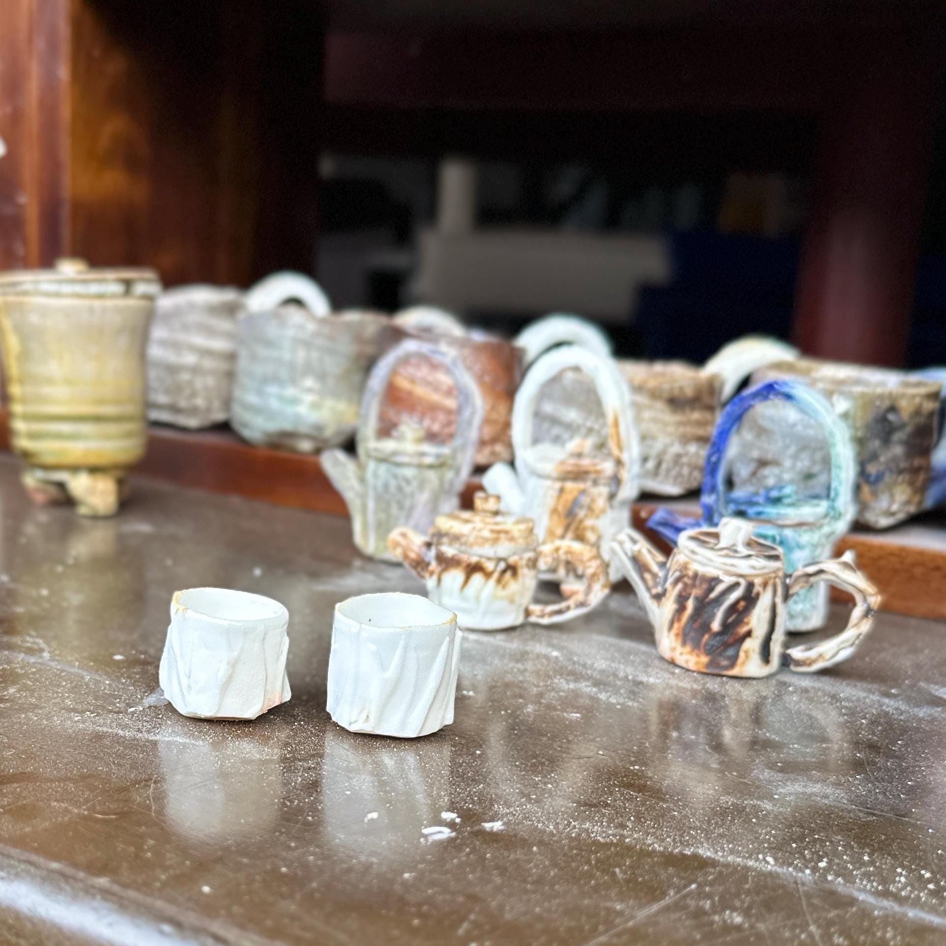 Diameter: 2 cm Height: 2 cm Capacity: approx. 5 ml (perfect for a single tiny sip of espresso, tea tasting, or display) Wood-fired porcelain Food-safe (gentle hand wash recommended) One of a kind