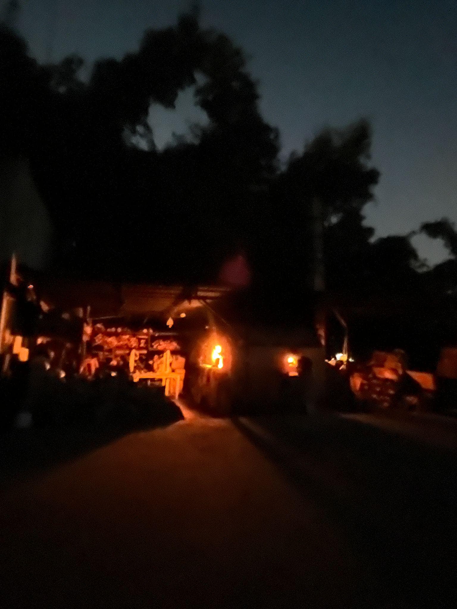 We started slow with small kindling, letting the temperature rise gently so the pieces inside could adjust to the heat. By evening the firebox was glowing orange, and we began stoking in earnest — eucalyptus, fruitwood, and pine logs sliding into the hungry mouth of the kiln every few minutes. The flames danced higher, licking the bag wall, turning bright white and then fierce yellow as the temperature climbed past 1200°C.